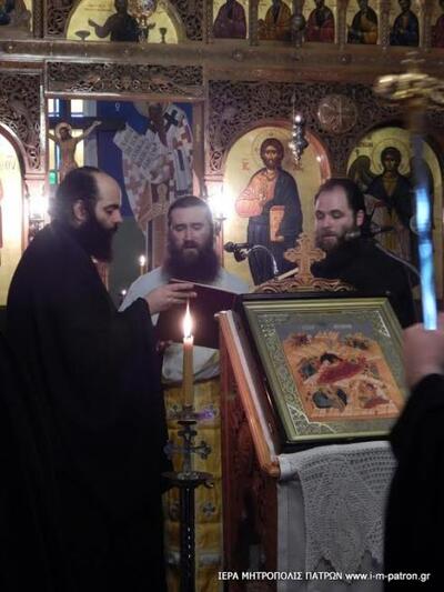Στὴν Ἱερὰ Ἀκολουθία ἐχοροστάτησε ὁ Σεβασμιώτατος Μητροπολίτης Πατρῶν κ.κ. Χρυσόστομος, ὁ ὁποῖος εὐχήθηκε σὲ ὅλους καλὰ καὶ πανευφρόσυνα Χριστούγεννα καὶ κάθε δωρεὰ παρά τοῦ ἐναθρωπήσαντος Θεοῦ ἡμῶν", αναφέρει η Μητρόπολη.