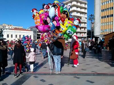 Σε εορταστικούς ρυθμούς κινείται σήμερα και η Πάτρα. Στο κέντρο κόσμος κάνει βόλτα ενώ τα καταστήματα θα είναι ανοικτά συνεχόμενα, μέχρι τις 7 το απόγευμα.