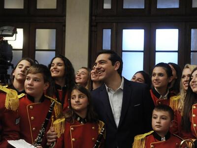 Τα Χριστουγεννιάτικα κάλαντα είπαν στον πρωθυπουργό Αλέξη Τσίπρα το Μουσικό σχολείο Αθήνας και η Δημοτική Φιλαρμονική Αμφιλοχίας.