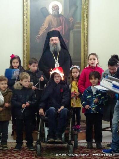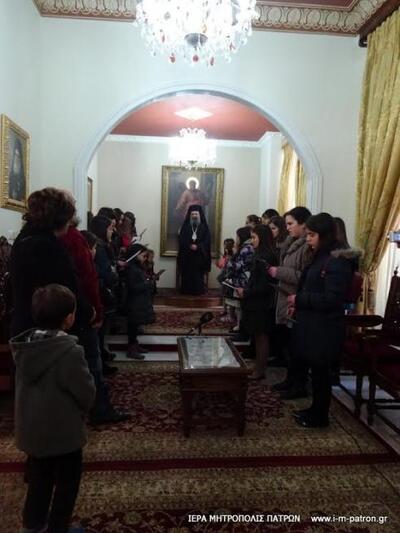 Παραμονή Χριστουγέννων σήμερα και το Επισκοπείο πλημμύρισε φωνές παιδιών που είπας τα κάλαντα.'Οπως αναφέρει η Μητρόπολη "τά κάλαντα, ἐνώπιον τοῦ Σεβασμιωτάτου Μητροπολίτου Πατρῶν κ.κ. Χρυσοστόμου, ἔψαλαν :
