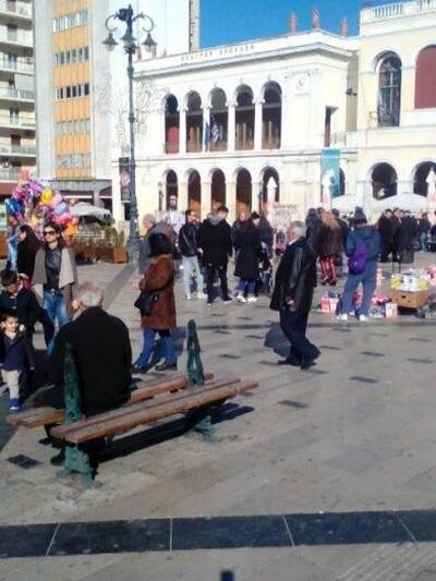 Η ηλιόλουστη ημέρα παρακίνησε εκατοντάδες Πατρινούς να βγουν το πρωί στις πλατείες και στα καφέ για να απολαύσουν την αργία της επομένης των Χριστουγέννων. Οι καφετέριες το μεσημέρι της Δευτέρας ήταν γεμάτες από κόσμο, ενώ οι οικογένειες προτίμησαν την πλατεία Γεωργίου, όπου βρίσκεται το Χριστουγεννιάτικο χωριό που έχει στήσει ο Δήμος.