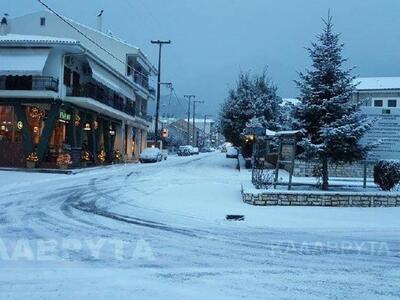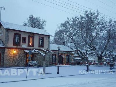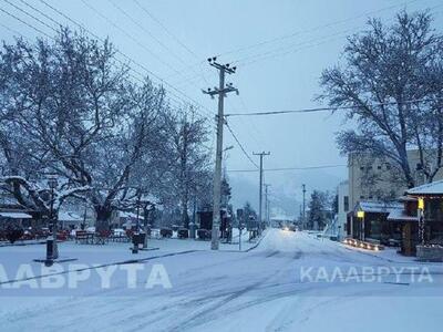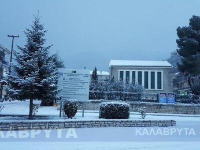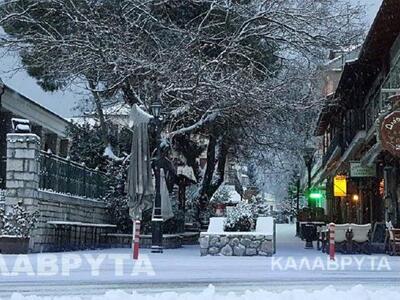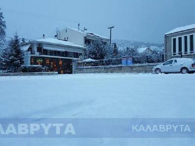Με το χιόνι να πέφτει έντονα από τις πρώτες πρωινές ώρες, η πόλη των Καλαβρύτων ¨ξύπνησε" στα... κατάλευκα.