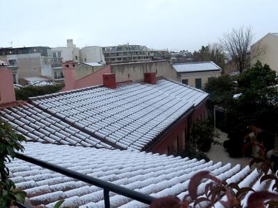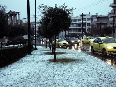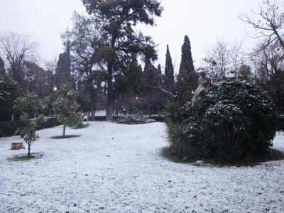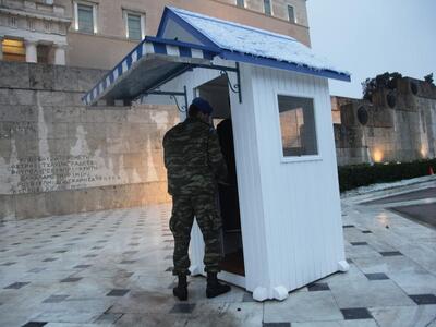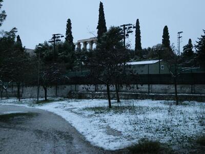 Χιόνισε ακόμα και στο κέντρο της Αθήνας! Ενα απαλό στρώμα χιονιού έκανε την εμφάνισή του στην σκεπή του φυλακίου των ευζώνων στον Αγνωστο Στρατιώτη, στα παρτέρια γυρω από την Βουλή, στον Εθνικό Κήπο αλλά και στους στύλους του Ολυμπίου Διός.