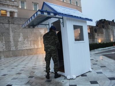 Ακίνητοι και πάντοτε εκεί. Οι Εύζωνες παρά τις άσχημες καιρικές συνθήκες στέκονται μπροστά στον άγνωστο στρατιώτη, ακόμη και με το θερμόμετρο σε πολύ χαμηλές θερμοκρασίες. Η συγκεκριμένη φωτογραφία τραβήχτηκε από τον Γιώργο Κονταρίνη για τη Eurokinissi.