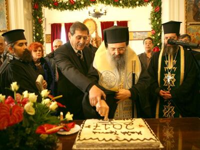 Στην κοπή της πρωτοχρονιάτικης πίτας στην οποία συμμετείχε και έδωσε τις δικές του ευχές ο Μητροπολίτης Πατρών κ. Χρυσόστομος.