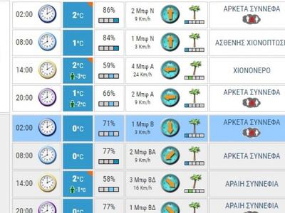 Σύμφωνα με ιστοσελίδα την οποία επιμελείται η μετεωρολόγος Χριστίνα Σούζη, το Σάββατο (07/02) αναμένονται χιονοπτώσεις στην Αθήνα, ενώ στα βόρεια προάστια όπως η Κηφισιά, το χιόνι θα πέφτει πυκνό. Την δε Κυριακή, το θερμόμετρο θα πέσει στα βόρεια προάστια ακόμα και στους -6 βαθμούς Κελσίου.