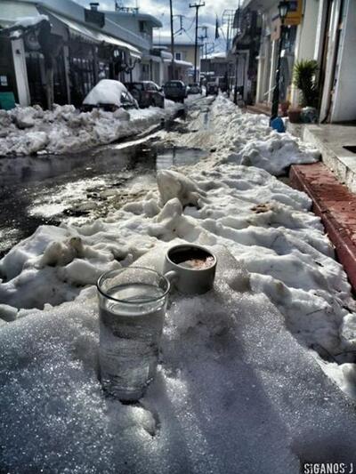 Τοποθετείς την φλιτζάνα, με το απαραίτητο ποτήρι νερό, στο χιόνι κι έτσι έχεις τον… φραπέ!
