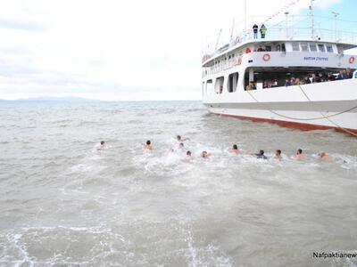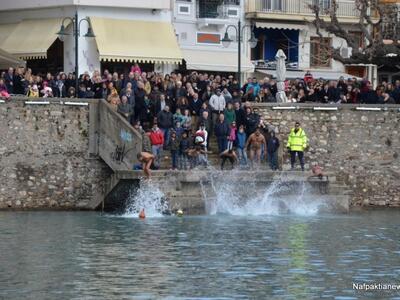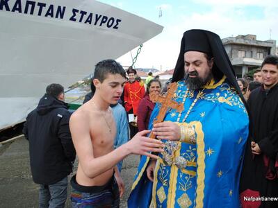 Με το πέρας της ακολουθίας ακολούθησε ο Αγιασμός των υδάτων στην προβλήτα του Αντιρρίου ,ενώ και φέτος πολλοί ήταν αυτοί που αψήφισαν το κρύο και έπεσαν στο νερό προκειμένου να πιάσουν τον Τίμιο Σταυρό προς ευλογία. Το Δήμο Ναυπακτίας εκπροσώπησαν ο πρόεδρος της κοινότητας κ. Ασημακόπουλος , οι αντιδήμαρχοι κ. Κοτσανάς ο πρόεδρος του ΚΔΑΠ κ. Νούλας και ο δημοτικός σύμβουλος κ. Κανέλλος.