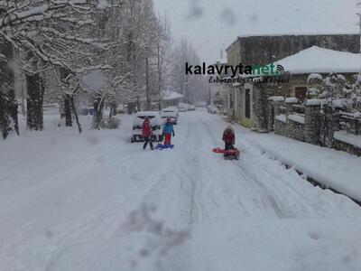 Ασταμάτητα χιονίζε χθες και στα Καλάβρυτα και όλοι οι επισκέπτες ήταν στους δρόμους και στις πλατείες απολαμβάνοντας το χιόνι. Μια σύντομη επισήμανση για όσους θέλουν να κινηθούν με τα αυτοκινητά τους ''ΠΑΝΤΟΥ ΑΛΥΣΙΔΕΣ ΚΑΙ ΜΕΓΑΛΗ ΠΡΟΣΟΧΗ '' ακόμα και μέσα στα Καλάβρυτα!