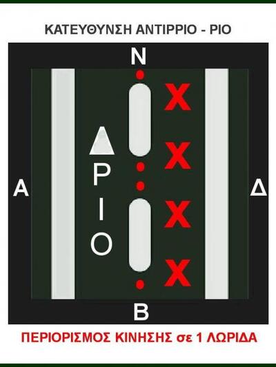 - και στις δύο λωρίδες κυκλοφορίας στην κατεύθυνση από Ρίο προς Αντίρριο