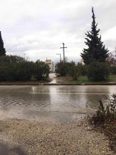 Λόγω της σημερινής δυνατής βροχόπτωσης και του αέρα, δρόμοι πλημμύρισαν, δέντρα έπεσαν και σε κάποια σημεία ήταν αδύνατον να περάσει κανείς.
