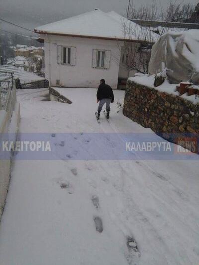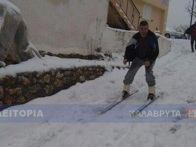 Ο Χρήστος Παπαγεωργόπουλος δεν έχασε την ευκαιρία με το πολύ χιόνι που έριξε σήμερα στα Μαζέικα, φόρεσε τα χιονοπέδιλα και επιδόθηκε σε... slalom μέσα στο χωρίο!!!