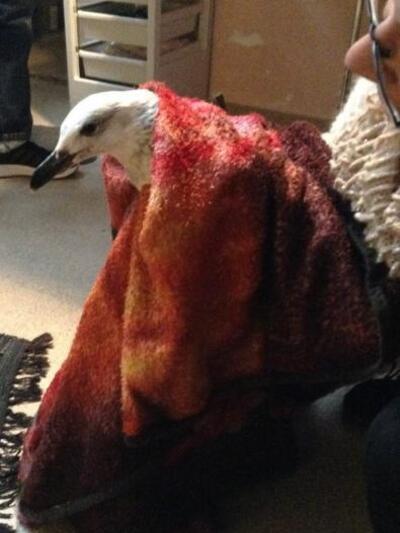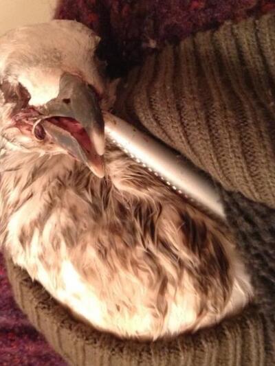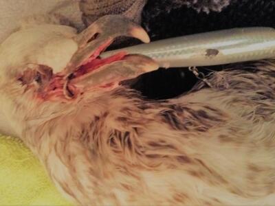 Οι συμπολίτες μας λοιπόν, έφεραν τον γλάρο στο ιατρείο μας. Η πρώτη εικόνα ήταν τρομακτική και απογοητευτική.