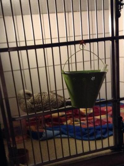 Και ανάρρωσε! Και αμέσως άρχισε να προσπαθεί να πετάξει μέσα στην κλούβα και να βρει τρόπο διαφυγής!