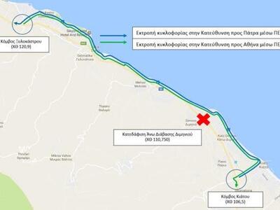 Την Δευτέρα 16/01 από τις 16:00 έως το αργότερο τις 07:00 το πρωί της επόμενης μέρας, η κυκλοφορία και των δύο κατευθύνσεων μεταξύ των κόμβων Κιάτου (Χ.Θ. 106,5) και Ξυλοκάστρου (Χ.Θ. 120,9) στην Νέα Εθνική Οδό Κορίνθου-Πατρών, θα διακοπεί προσωρινά και θα εξυπηρετείται μέσω παράκαμψης από την Παλαιά Εθνική Οδό, όπως φαίνεται στο ακόλουθο σχηματικό διάγραμμα.Όπως αναφέρει σχετική ανακοίνωση: