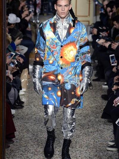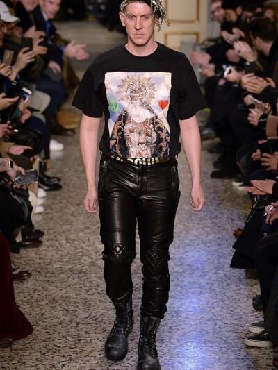 Τέλος στον Moschino τα prints επιστημονικής φαντασίας, τεχνολογίας και … άνθινης ταπετσαρίας περίσσεψαν με τον ίδιο τον επικεφαλής σχεδιαστή Τσέρεμι Σκοτ να κάνει το μοντέλο στην πασαρέλα.
