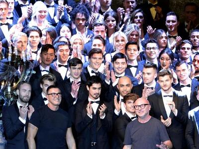 Διεθνής είδηση έγινε το σόου των Dolce e Gabbana καθώς το «άνοιξε» η δημοφιλέστατη περσόνα του ίντερνετ Κάμερον Ντάλας από το Λος Αντζελες με μοβ μπροκάρ κοστούμι. (Ο 22χρονος καλιφορνέζος είναι διάσημος από την εφαρμογή Vine που του απέφερε πάνω από 8 εκατομμύρια ακόλουθους ενώ τώρα κάνει απόπειρες στο σινεμά και το τραγούδι.)