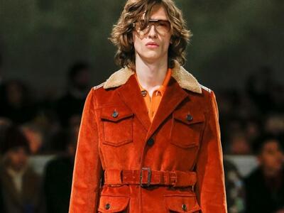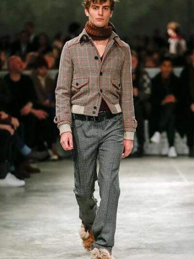 Η Muccia Prada παρουσίασε μια new retro κολεξιόν που μας θύμισε παλιές ταινίες με πρωταγωνιστές το Ρόμπερτ Ρέντφορντ και το Ράιαν ο Νηλ. Πολύ καμηλό και πορτοκαλί με παλιομοδίτικα πατρόν κοστουμιών, seventies jackets και φαρδιά κοτλέ και δερμάτινα παντελόνια.
