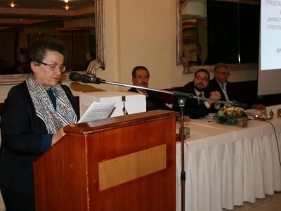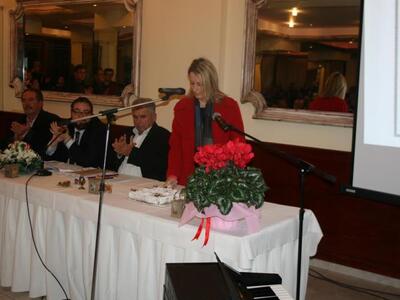 Η Γενική Γραμματέας κα. Ι. Θεοδωροπούλου προλόγισε το έργο των μουσικών σχημάτων, αλλά και της Πολυφωνικής γενικότερα, αναφερόμενη επίσης και στην πολύ αγαστή συνεργασία του Συλλόγου με την Πολυφωνική. Ανέγνωσε το πρακτικό της απόφασης του ΔΣ για την απονομή της τιμητικής διάκρισης ως ελάχιστο δείγμα ευγνωμοσύνης στην Πολυφωνική Χορωδία Πατρών, για το πλούσιο πολιτιστικό έργο που έχει προσφέρει στην ευρύτερη περιοχή και στο Σύλλογο ιδιαίτερα.