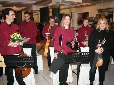 Στη συνέχεια του ψυχαγωγικού προγράμματος της τελετής, απέδωσαν τα κάλαντα από διάφορες περιοχές της χώρας, τα μουσικά σχήματα της Πολυφωνικής Χορωδίας Πατρών 1) το γυναικείο φωνητικό σχήμα ‘’Εμμέλεια’’, υπό τη Διεύθυνση της κας. Αλμπένα Πενκόβα, στο πιάνο η κα. Αρετούσα Νικολοπούλου και 2) το μουσικό σχήμα ‘’Vibrato’’, υπό τη Διεύθυνση του κου. Γεωργίου Αθανασακόπουλου, τα οποία όλα μαζί συνέγειραν τους συμμετέχοντες με την πολύ ωραία μελωδία των χορωδών και με τη βοήθεια των μουσικών οργάνων.
