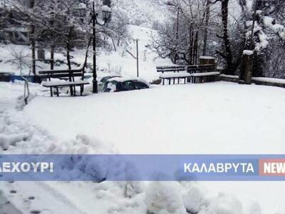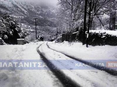 Πυκνή χιονόπτωση από τις πρωινές ώρες στα χωριά δυτικά του δήμου Καλαβρύτων στον Ερύμανθο. Ο άξονας Λεχούρι, Μορόχοβα (Πλάκα), Ανάσταση, Πλατανίτσα, εχουν τα περισσότερα προβλήματα από την χιoνόστρωση, που ξεπερνά του 20 πόντους.