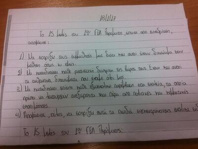 1) Να στηρίξει τους συμμαθητές μας διότι και αυτοί έχουν δικαίωμα στη μάθηση όπως κι εμείς.