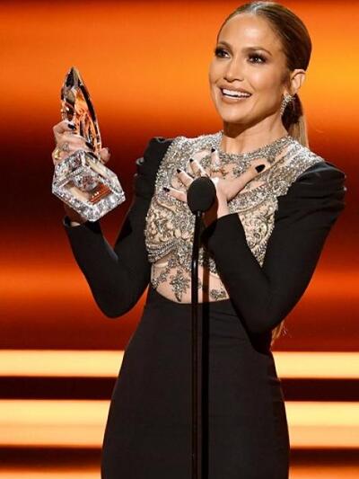 Η σούπερ σταρ της ποπ, ηθοποιός, τραγουδίστρια, παραγωγός και πιο sexy performer ever κατά τους δημοσιογράφους της άλλης πλευράς του Ατλαντικού, θάμπωσε τα φλας με μακριά τουαλέτα Reem Acra, με διαφάνεια και βικτωριανό, αστραφτερό διάκοσμο στο μπούστο και απίστευτα εφαρμοστή σε μαύρο χρώμα στο υπόλοιπο κορμί. Ετσι αναδείχθηκαν στο έπακρο οι περίφημες καμπύλες της δίχως το αποτέλεσμα να δείχνει φθηνό. Τα δημοσιεύματα έβαλαν στο μικροσκόπιο επίσης το μακιγιάζ σε τέλειους nude γήινους τόνους, την τέλεια «αλογουρά», το τσαντάκι Ferragamo τα μαύρα νύχια αλλά και τα διαμαντένια δαχτυλίδια και σκουλαρίκια Stern, που έδειχναν πάρα πολύ μοντέρνα και καθόλου κλασικά. Επιπλέον η Λόπεζ είναι από εκείνες που ξέρουν να ποζάρουν υποδειγματικά στον «κόκκινο χαλί». Παραλαμβάνοντας το βραβείο της το αφιέρωσε με γλύκα στον κόσμο και στα δίδυμα παιδιά της.