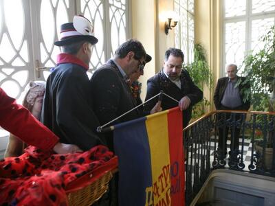 «Σοκολατορίχτες», «Σοκολατομαχίες», «Σοκολατοδρομίες», «Σοκολατομανίες» και «Σοκολατοπαίχτες». Το λάβαρο του Πατρινού Καρναβαλιού 2017 θα παραμείνει στο Δημαρχείο μέχρι το τέλος των εκδηλώσεων, στις 26 Φεβρουαρίου σηματοδοτώντας τη μεγάλη γιορτή της καρναβαλικής πρωτεύουσας.
