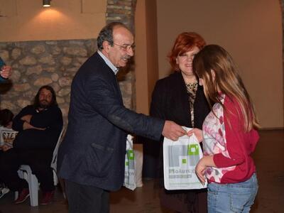«Η Πρόεδρος του Δημοτικού Συμβουλίου και ο Αντιδήμαρχος παρέδωσαν στους μαθητές και στους εκπαιδευτικούς κάρτα για ελεύθερη είσοδο στις εκδηλώσεις του Πολιτιστικού Οργανισμού, του ΔΗ.ΠΕ.ΘΕ. και του Διεθνούς Φεστιβάλ και για μερική συμμετοχή στα μαθήματα του Δημοτικού Ωδείου και του Εικαστικού Εργαστηρίου, ενώ ο Πρόεδρος της ΔΕΥΑΠ, μοίρασε στους μαθητές τσάντες με τετράδια, στυλό και μολύβια.
