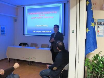 Μια ενδιαφέρουσα εκδήλωση πραγματοποιήθηκε από την Εταιρεία Κοινωνικής Δράσης και Πολιτισμού Κοινο_Τοπίαwww.koinotopia.gr με θέμα «Ατμοσφαιρική ρύπανση στην Πάτρα: τι συμβαίνει, ποιες είναι επιπτώσεις, πως μπορεί να αντιμετωπισθεί» στον πολυχώρο της.Η εκδήλωση-συζήτηση έγινε με τη συμβολή τριών εισηγητών καθηγητών του Πανεπιστημίου Πατρών του Σπύρου Πανδή (Χημικών Μηχανικών) του Ανδρέα Καζαντζίδη (Φυσικής) και του Απόστολου Βανταράκη (Ιατρικής) που με εξαιρετικό τρόπο παρέθεσαν στοιχεία με κατανοητό τρόπο και χρήση οπτικοακουστικού υλικού.