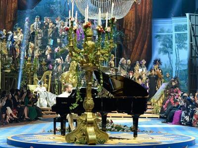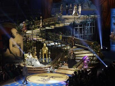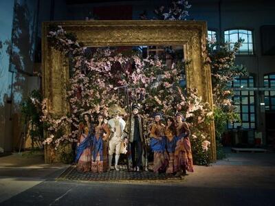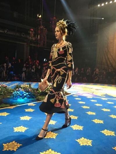 Το σόου είχε υπόκρουση όπερα, τα μοντέλα κατέβηκαν από μια τεράστια σκάλα στη σκηνή του θεάτρου πλαισιωμένη από σκηνικά, ο άνθινος διάκοσμος ήταν μεγαλειώδης ενώ σερβιρίστηκε χαρακτηριστικό πιάτο της πόλης: ριζότο αλά μιλανέζε.