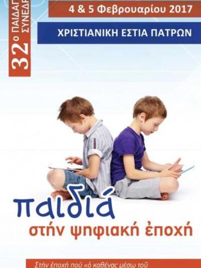 Το 32ο Παιδαγωγικό συνέδριο προγραμματίζεται να γίνει στην Χριστιανική Εστία Πατρών, στην οδό Μιαούλη. Το θέμα του συνεδρίου είναι άκρως ενδιαφέρον και επίκαιρο: «Παιδιά στην ψηφιακή εποχή».