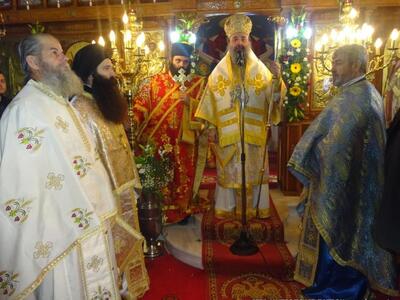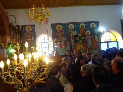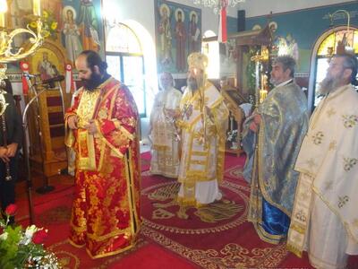 Ἀνήμερα, τήν Θεία Λειτουργία ἐτέλεσε ὁ Σεβασμιώτατος Μητροπολίτης Πατρῶν κ.κ. Χρυσόστομος, μέ τήν συμμετοχή πολλῶν Ἱερέων καί πλῆθος Λαοῦ ἀπό τό χωριό καί τήν γύρω περιοχή.