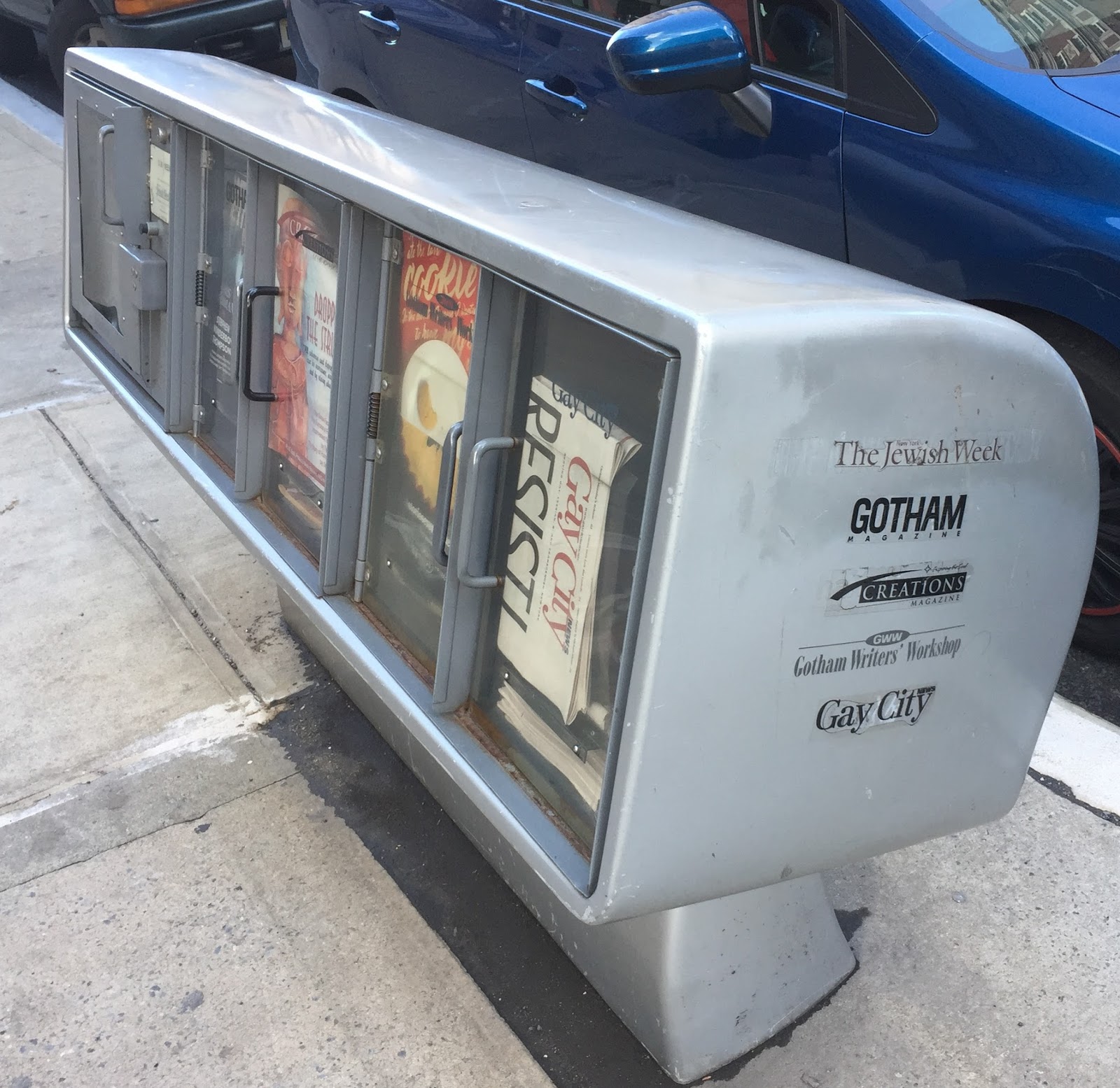 - Στην προθήκη προωθήσεως των εφημερίδων, που συναντάμε στο πεζοδρόμιο, αναγράφεται η επιγραφή «Gay City», δηλ. Νέα Υόρκη, « η πόλη των Ομοφυλοφίλων», και