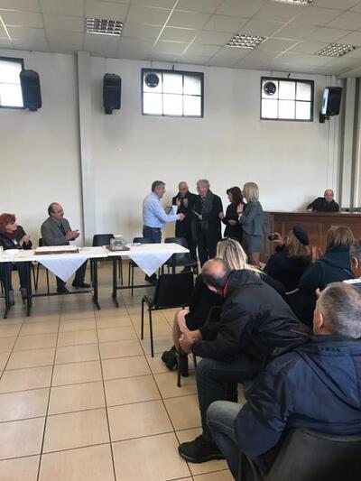 Ιδιαίτερη στιγμή στην εκδήλωση ήταν όταν ο Πολιτιστικός Σύλλογος, παρέδωσε τιμητική πλακέτα στον Πρόεδρο του Συλλόγου Προσωπικού Γιώργο Μάρκου, για την καθοριστική συμβολή των εργαζομένων και την προσπάθεια που κατέβαλλαν για να εκπονηθεί σε ελάχιστο χρονικό διάστημα, μελέτη των δικτύων αποχέτευσης στην περιοχή του Προαστείου, ώστε το έργο να ενταχθεί στο ΕΣΠΑ και σήμερα να βρίσκεται στο στάδιο έγκρισης της δημοπράτησης.»