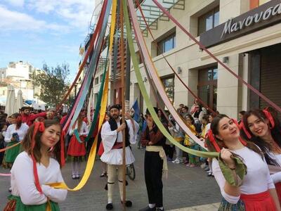 Στις 18.00 από την πλατεία Αγίας Σοφίας θα αρχίσει η παρέλαση μεταμφιεσμένων με γαϊτανάκια κατασκευασμένα από εκπολιτιστικούς συλλόγους της πόλης με τη συνοδεία του μουσικού άρματος σε ήχους καρναβαλικούς και παραδοσιακούς. Η διαδρομή που θα ακολουθήσει θα είναι Κωνσταντινουπόλεως – Μαιζώνος και θα καταλήξει στην πλατεία Γεωργίου Α΄. Εκεί οι εκπρόσωποι των εκπολιτιστικών συλλόγων θα μοιράζουν το παραδοσιακό γλύκισμα της Αποκριάς, το γαλακτομπούρεκο της παραγωγής τους.