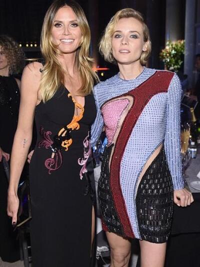 Με τη γερμανίδα σταρ και style icon Νταιάν Κρούγκερ που επέλεξε σούπερ μίνι φόρεμα- μωσαικό χρωμάτων να κερδίζει τα πιο κολακευτικά σχόλια στο …Versace team, οι «παλιές» δόξες του μόντελινγκ Χάιντι Κλουμ, Ναόμι Κάμπελ, Αλεσάντρα Αμπρόζιο, Αμπερ Βαλέτα αλλά και η ηθοποιός Ζόε Κράβιτζ επένδυσαν στον ιταλικό οίκο και στο nineties glamour με τα θεαματικά ντεκολτέ, σκισίματα και «ουρές». Μόνο η χολιγουντιανή ντίβα Σκάρλετ Γιόχανσον έκανε εμφάνιση σε διαφορετικό, πιο «σοβαρό» ύφος με σμόκιν κοστούμι Versace και κοσμήματα Harry Winston.