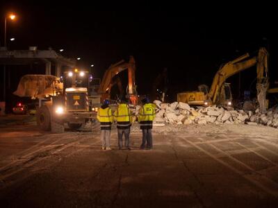 Τον καλύτερό τους εαυτό έδωσαν οι εργαζόμενοι του συνεργείου που είχε αναλάβει το έργο να ξηλώσει τον παλιό, πλέον, σταθμό των διοδίων της Πατρών – Κορίνθου στο Ρίον. Το συνεργείο εργάστηκε από τις 6 το απόγευμα, οπότε και έκλεισε ο δρόμος, μέχρι το τις πρώτες πρωινές ώρες, ώστε να ολοκληρώσει το έργο, εντός των χρονοδιαγραμμάτων και να παραδώσει τον δρόμο που είχε κλείσει πριν από τις έξι τα ξημερώματα του Σαββάτου.