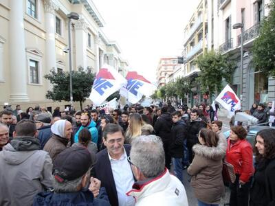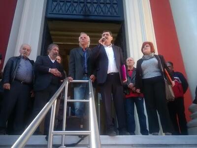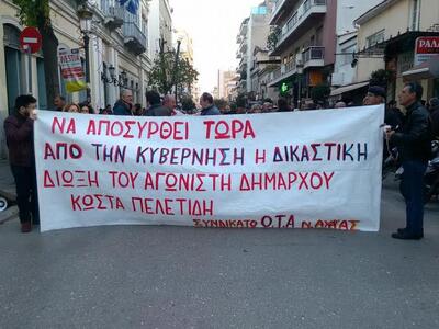 Η αρχή έγινε με τους εργαζόμενους του Δήμου, που προχώρησαν σε στάση εργασίας και συγκέντρωση στις 8 το πρωί, έξω από το Δημαρχείο και η οποία λίγο πριν τις 9 μετατράπηκε σε μια μαχητική πορεία. Με επικεφαλής τον Δήμαρχο Πατρέων Κώστα Πελετίδη, τους Δημάρχους Καισαριανής, Ηλία Σταμέλο, Χαϊδαρίου, Μιχάλη Σελέκο και Πετρούπολης, Βαγγέλη Σίμο, τους Αντιδημάρχους, την Πρόεδρο του Δημοτικού Συμβουλίου Πάτρας, Κατερίνα Γεροπαναγιώτη, δημοτικούς και διαμερισματικούς συμβούλους, κατευθύνθηκε στα Δικαστήρια, όπου ήταν συγκεντρωμένο πλήθος κόσμου (το οποίο όσο περνά η ώρα αυξάνεται), που ανέμενε τον Δήμαρχο και με συνθήματα εξέφραζε την στήριξή του.