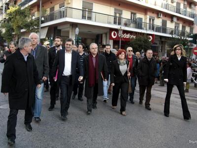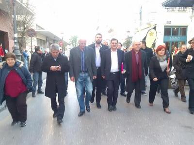 Παρούσα στη συγκέντρωση είναι αντιπροσωπεία της Κ.Ε. του ΚΚΕ, που αποτελείται από τον Βουλευτή Αχαΐας και μέλος της Κ.Ε., Νίκο Καραθανασόπουλο, Νίκο Σοφιανό, μέλος του Π.Γ. της Κ.Ε. του κόμματος και την Τασία Τσατσούλη, μέλος της Κ.Ε".
