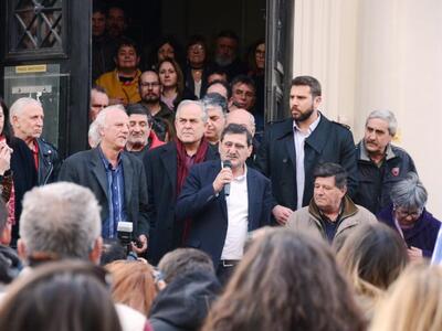 Μέχρι τη διακοπή της ακροαματικής διαδικασίας, το πλήθος παρέμενε συγκεντρωμένο φωνάζοντας συνθήματα έξω από τα Δικαστήρια και απαιτώντας να σταματήσει η δίωξή του, καθώς και να αναλάβουν προς αυτή την κατεύθυνση πρωτοβουλίες η κυβέρνηση και οι αντίστοιχες κρατικές υπηρεσίες.