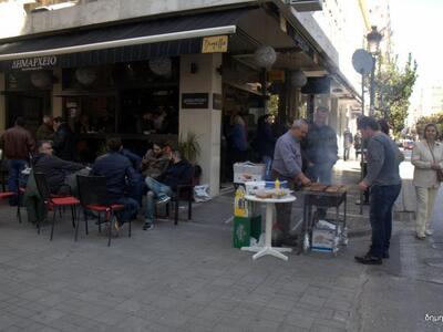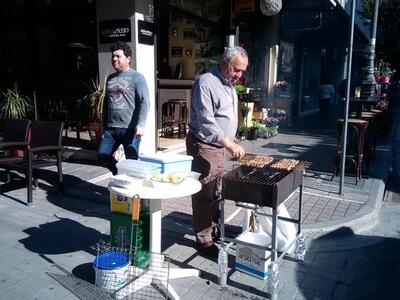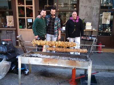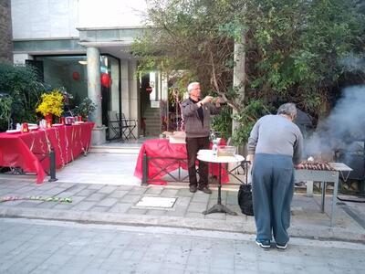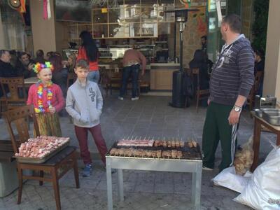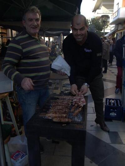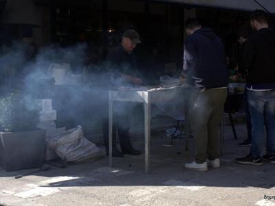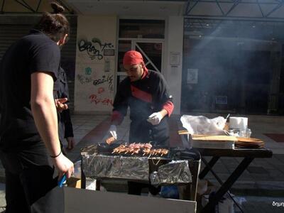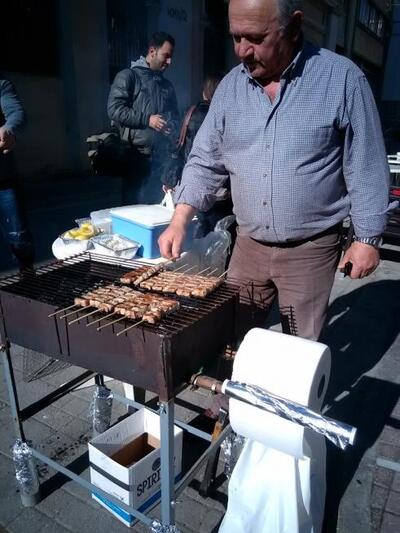 Σουβλάκια λουκάνικα και άλλα εδέσματα συνοδεία οίνου και άλλω ποτών δίνουν έναν γιορτινό τόνο στην ημέρα.