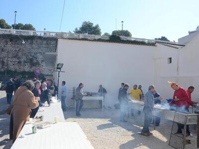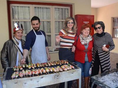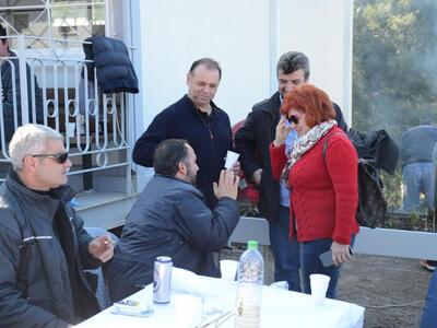 Στο Δημοτικό Βρεφοκομείο βρέθηκαν στο τσίκνισμα ο Κ. Πελετίδης, η Κατερίνα Γεροπαναγιώτη και η Βίβιαν Σαμούρη.