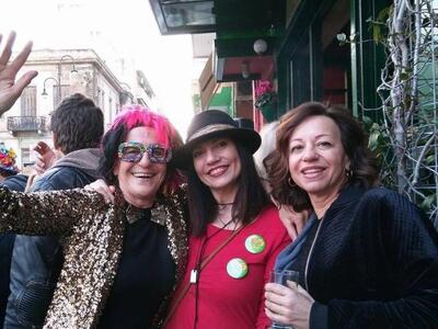 Εννοείται στον πεζόδρομο της Ρήγα Φεραίου η περαντζάδα ήταν ατέλειωτη από κόσμο κάθε ηλικίας, με πολλούς νεώτερους μασκαραμένους. Εκανε και εμφάνιση η βασίλισσα του Καρναβαλιού με οριεντάλ νούμερο. Chutney, Bara, Cucuvaia, Μarmelada, Pedonale είχαν «σηκώσει τους τόνους», αλλά κλίμα πάρτι διαπιστώσαμε και σε Tρελλή Ροδιά, Κελάρι, City, Libido. Πάντως ο συνωστισμός στη στοά Κόλλα λόγω Distinto ήταν απερίγραπτος. «Κόλαση»- άλλο να το διαβάζετε, άλλο να το δείτε.