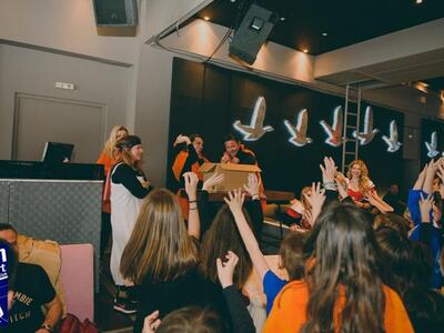 «Ξεσάλωσαν» κυριολεκτικά oι μικροί μασκαράδες στο φινάλε της παιδικής παρέλασης στο W/ Events του Ρίου μετά από πρόσκληση του On Court Tennis Club και του γκρουπ «Κουρδιστά πορτοκάλια». Η πελώρια σάλα είχε κατά το ήμισι μεταμορφωθεί σε παιδότοπο με μεγάλα φουσκωτά παιχνίδια οπότε τα χοροπηδητά, οι τσουλήθρες και τα κυνηγητά κράτησαν τέσσερις ώρες ξετρελαίνοντας τα παιδιά! Το πάρτι προσέφερε επίσης πλούσιους μπουφέδες για μικρούς και μεγάλους, σοκολατοπόλεμο αλλά και πολύ χορό για μαμάδες και μπαμπάδες, χάρη στην εκρηκτική υπόκρουση καρναβαλικών και λαικών ασμάτων.