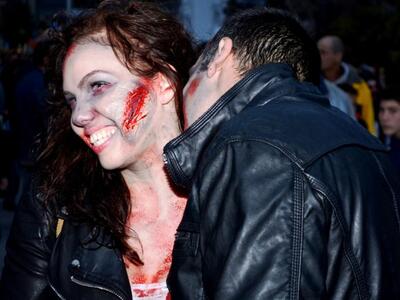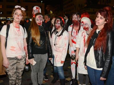 Μασκαράδες μεταμφιεσμένοι σε τέρατα (ζόμπι), γέμισε απόψε η Πλατεία Συντάγματος, η Ερμού και το Θησείο στο πλαίσιο της εκδήλωσης Zombie Athens Walk, τον ετήσιο, περίπατο ζόμπι στο κέντρο της πόλης, που φέτος διοργανώνεται για πέμπτη χρονιά . Οι συμμετέχοντες στο περίπατο ξεκίνησαν την πορεία τους από το Σύνταγμα και έφθασαν μέχρι τον Κεραμεικό, στο Χυτήριο Theatre & ART Cafe όπου η βραδιά κατέληξε σε πάρτυ, στο λεγόμενο zombie thriler party.