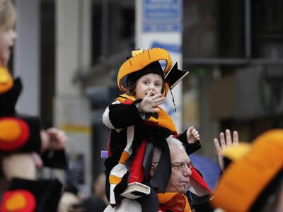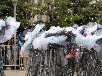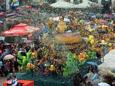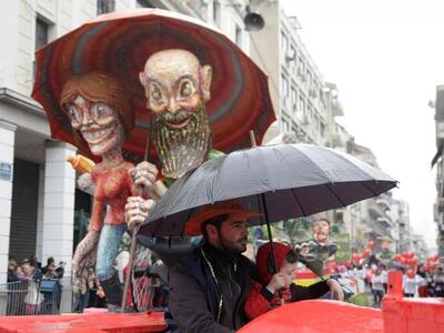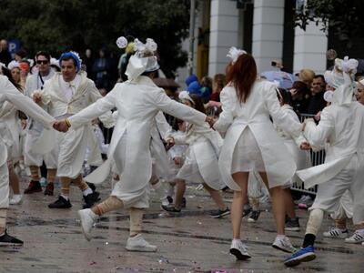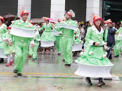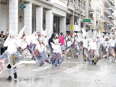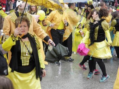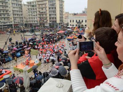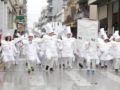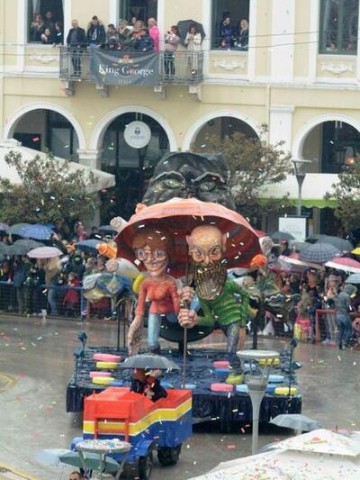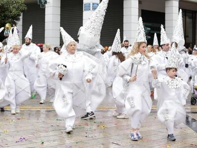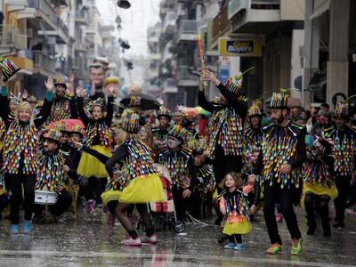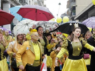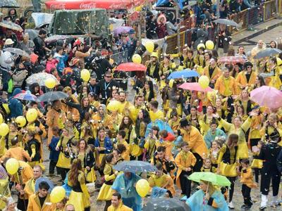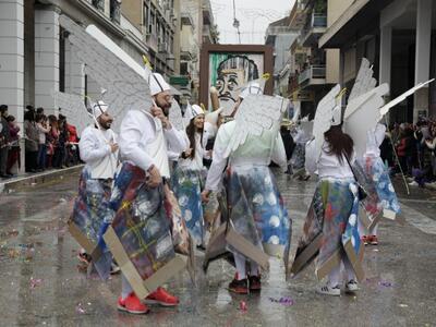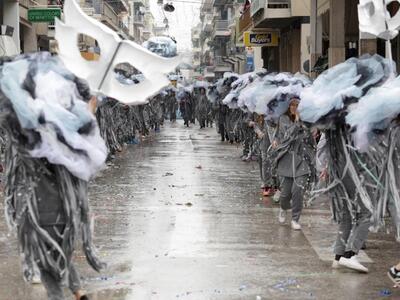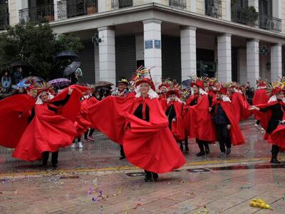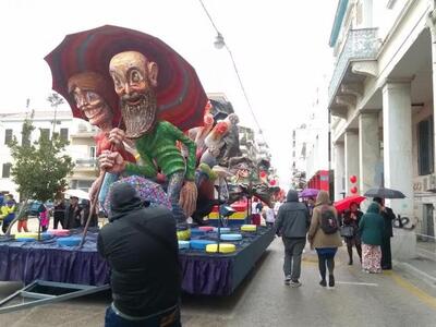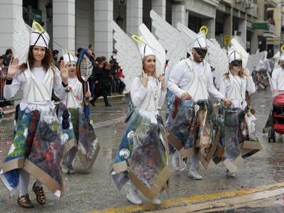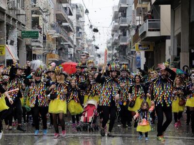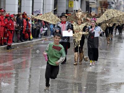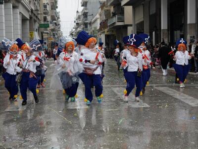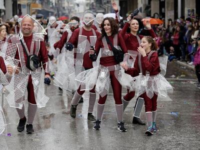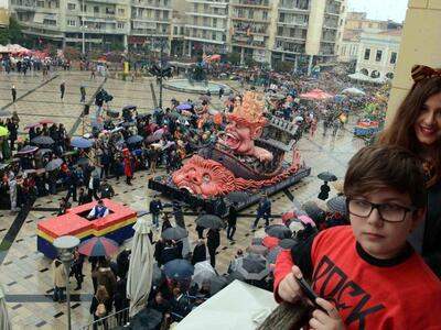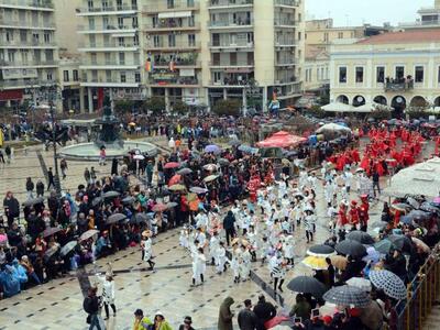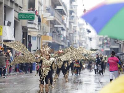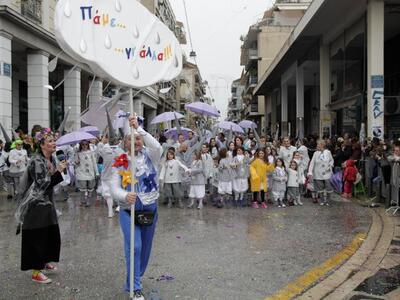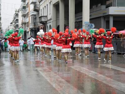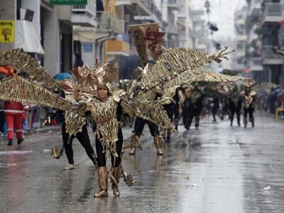 Η βροχή δεν στάθηκε ικανή να πτοήσει τους χιλιάδες καρναβαλιστές, οι οποίοι παρέλασαν το μεσημέρι της Κυριακής, σκορπώντας χαρά, ενθουσιασμό και κέφι στη μεγάλη γιορτή της Πάτρας. Όπως δεν πτόησε ούτε τους χιλιάδες επισκέπτες, που προφυλαγμένοι κάτω από τις στοές των πεζοδρομίων της οδού Κορίνθου, παρακολούθησαν την παρέλαση.