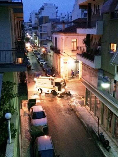 Σε ετοιμότητα κάθε χρόνο τα συνεργεία καθαρισμού του Δήμου της Πάτρας. Ακολουθούσαν αμέσως μετά και τους σοκολατορίχτες με τους οποίους ολοκληρώνεται παραδοσιακά η μεγάλη παρέλαση του Πατρινού Καρναβαλιού και άστραφταν κυριολεκτικά την Κορίνθου.