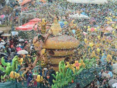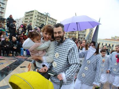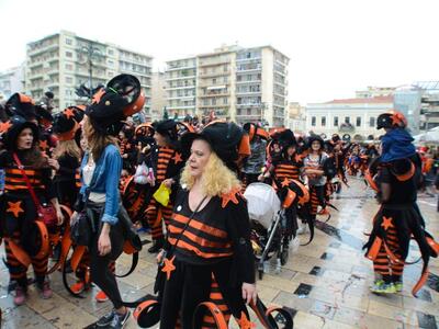 Mπορεί η βροχή φάνηκε να φλερτάρει στην αρχή της Μεγάλης Παρέλασης της Κυριακής, ωστόσο αμέσως έδωσε τη θέση της στον καρναβαλικό οίστρο των χιλιάδων καρναβαλιστών που αποδείχτηκε απτόητος πυροδοτώντας το ιλιγγιώδες κέφι και την αυθόρμητη έκρηξη χαράς που πλημμύρισε την οδό Κορίνθου από την οδό Γούναρη έως την οδό Κιλκίς και βέβαια την πλατεία Γεωργίου, την πλατεία του Πατρινού Καρναβαλιού.