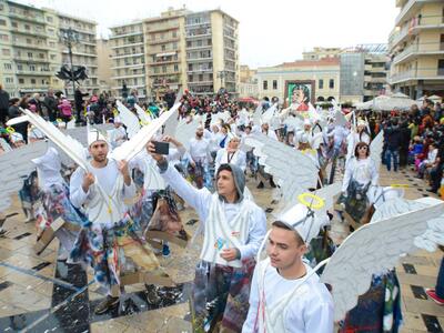Στο τέλος της παρέλασης το αναλλοίωτο στο πέρασμα του χρόνου έθιμο του σοκολατοπόλεμου άφηνε την πιο γλυκιά γεύση σε Πατρινούς και επισκέπτες προκαλώντας τον ενθουσιασμό τους.